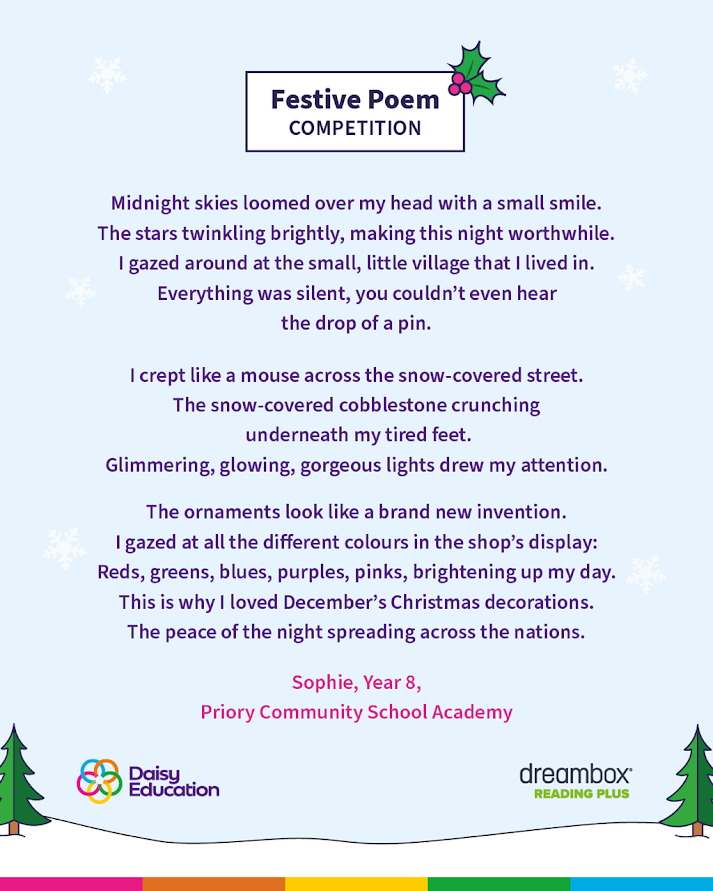 Local poet prodigy Sophie Constable has been shortlisted for the Daisy Education UK Winter Poet Competition!