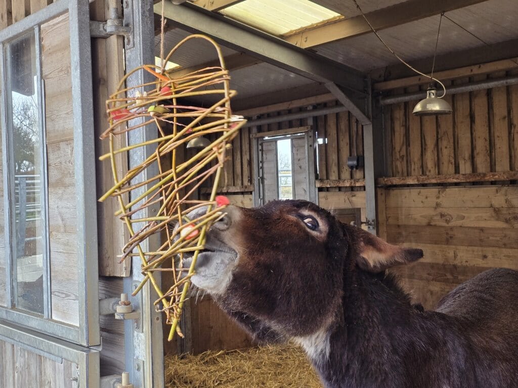 Enrichment is more than just fun — it keeps the donkeys mentally active, encourages exercise, and stops boredom in its tracks. Supervising the treats ensures the residents enjoy their fruity feast safely, while staying in tip-top shape.