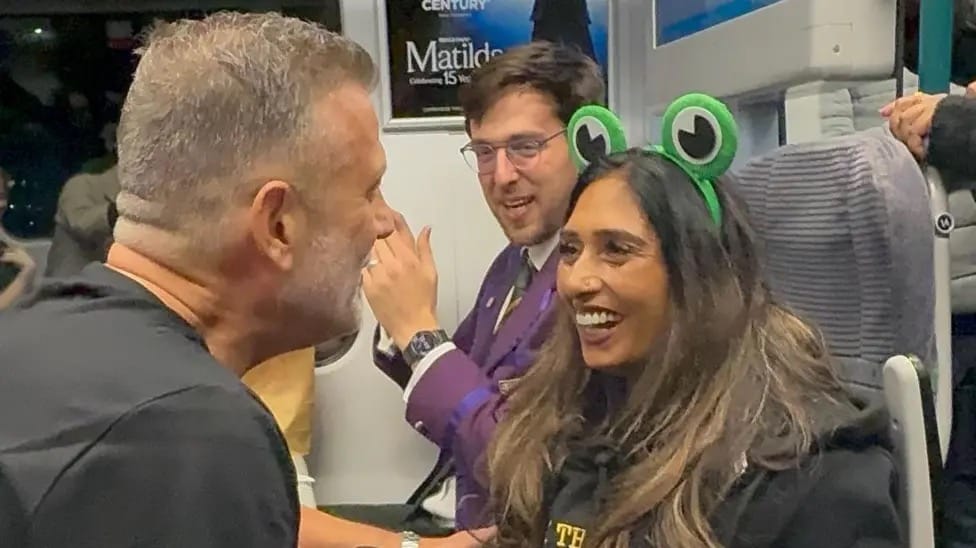 The train operator was in on the plan after Steve contacted London Northwestern Railway in advance. During the journey, the conductor made a special announcement hinting at what was about to happen, prompting Steve to seize his moment.
