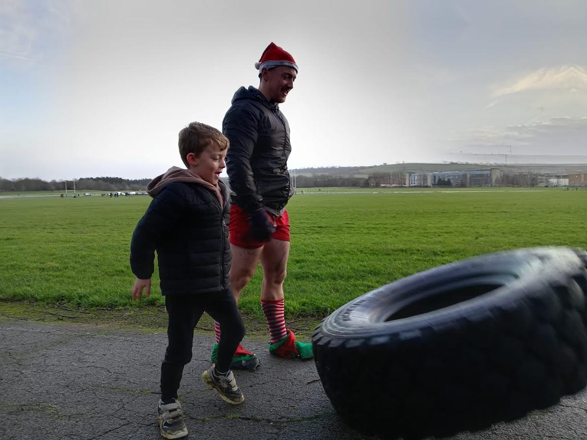 The gruelling challenge saw Matt flip a massive 100kg tyre for over half a day. The event was made even more special by the involvement of his young nephew, who was pictured lending a helping hand throughout the day.