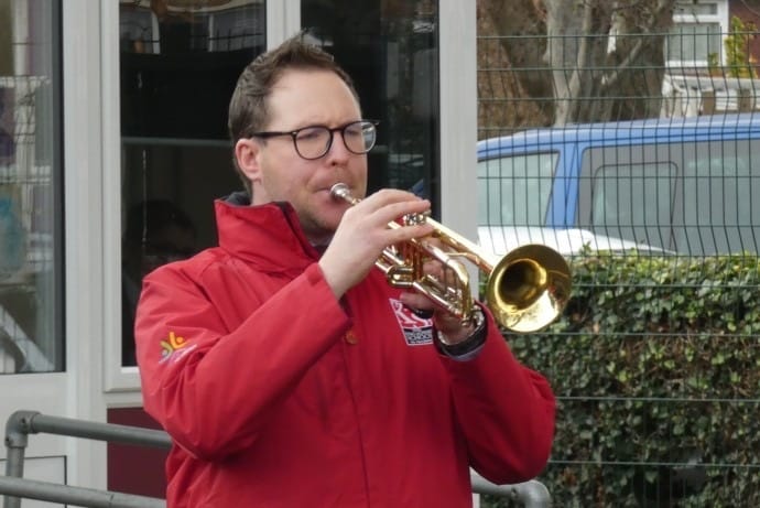 Mr Maguire played the ‘Last Post’ as the Royal British Legion flag was lowered. Wreaths were laid by members of the Royal British Legion and Sixth Form students, surrounded by rings of poppies.