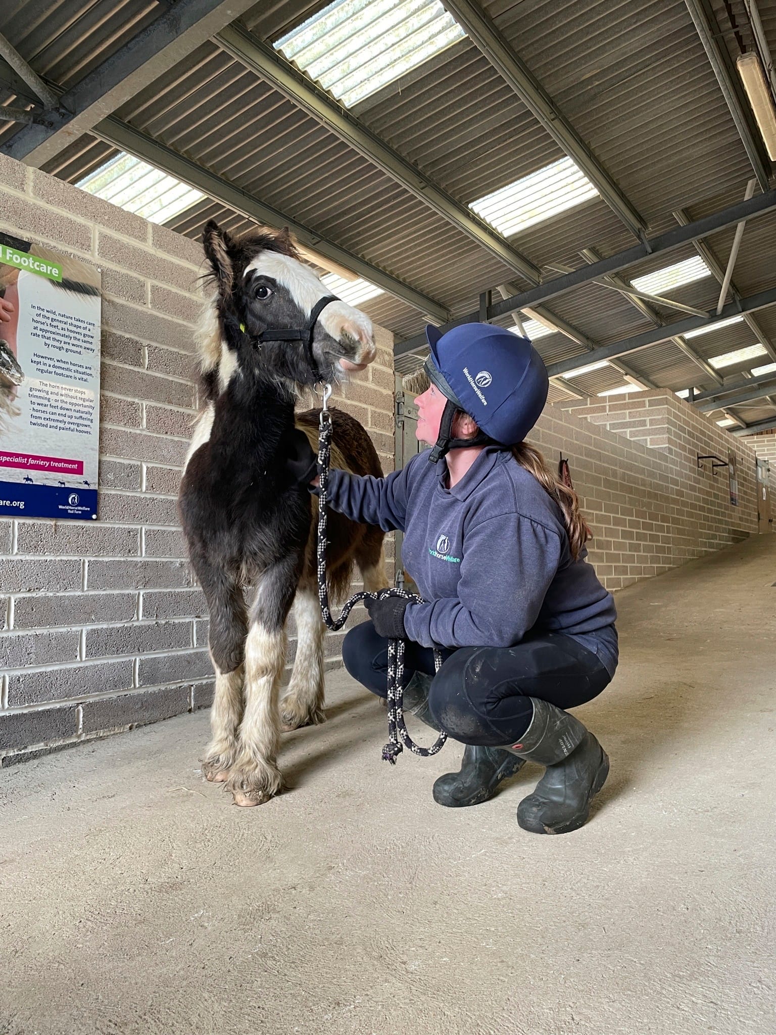 “He was absolutely petrified of humans,” explains Centre Manager Claire Dickie. “Even stepping into his crew yard – a space carefully designed for working with unhandled horses safely – would send him careering around in panic. At six weeks old, he should have been playful and curious about the world around him, so it was heartbreaking to see him so afraid.”