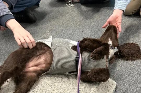 “She was a bit excitable at first, but then she realised she was there to cuddle people and that was it,” she said. “She was sitting on students’ laps and leaning into them. I’d never seen her do that before.”