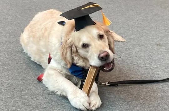 The three-year-old proved a natural, offering comfort and cuddles to students dealing with stress and mental health challenges, helping them relax and open up.