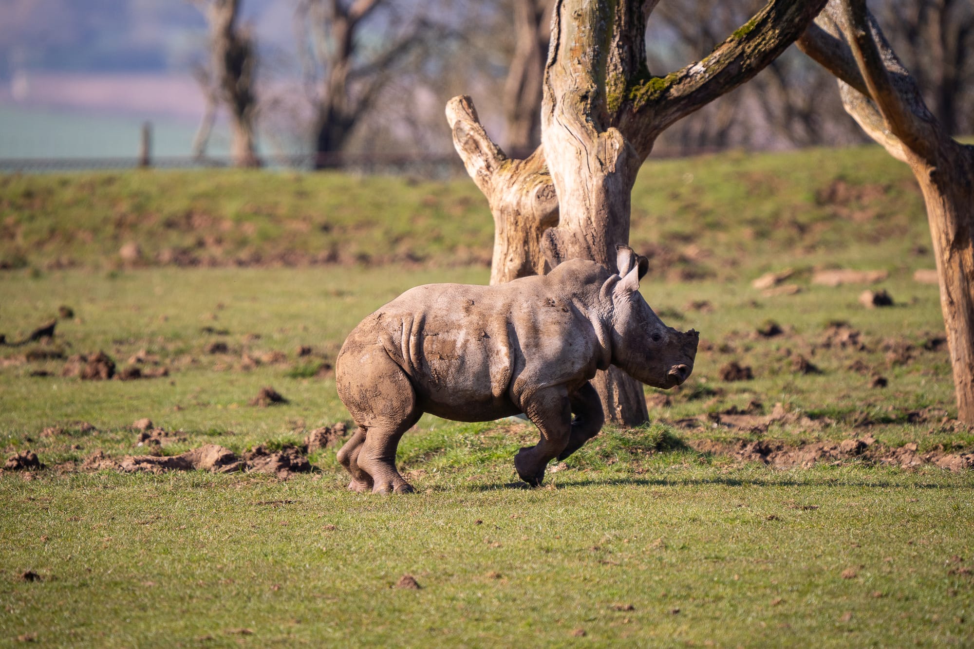 Born on 31st December to mum Jaseera, the newest addition to the conservation zoo’s ‘crash’ of ten Southern white rhinos, Mick, was a little tentative about getting his feet muddy at first.