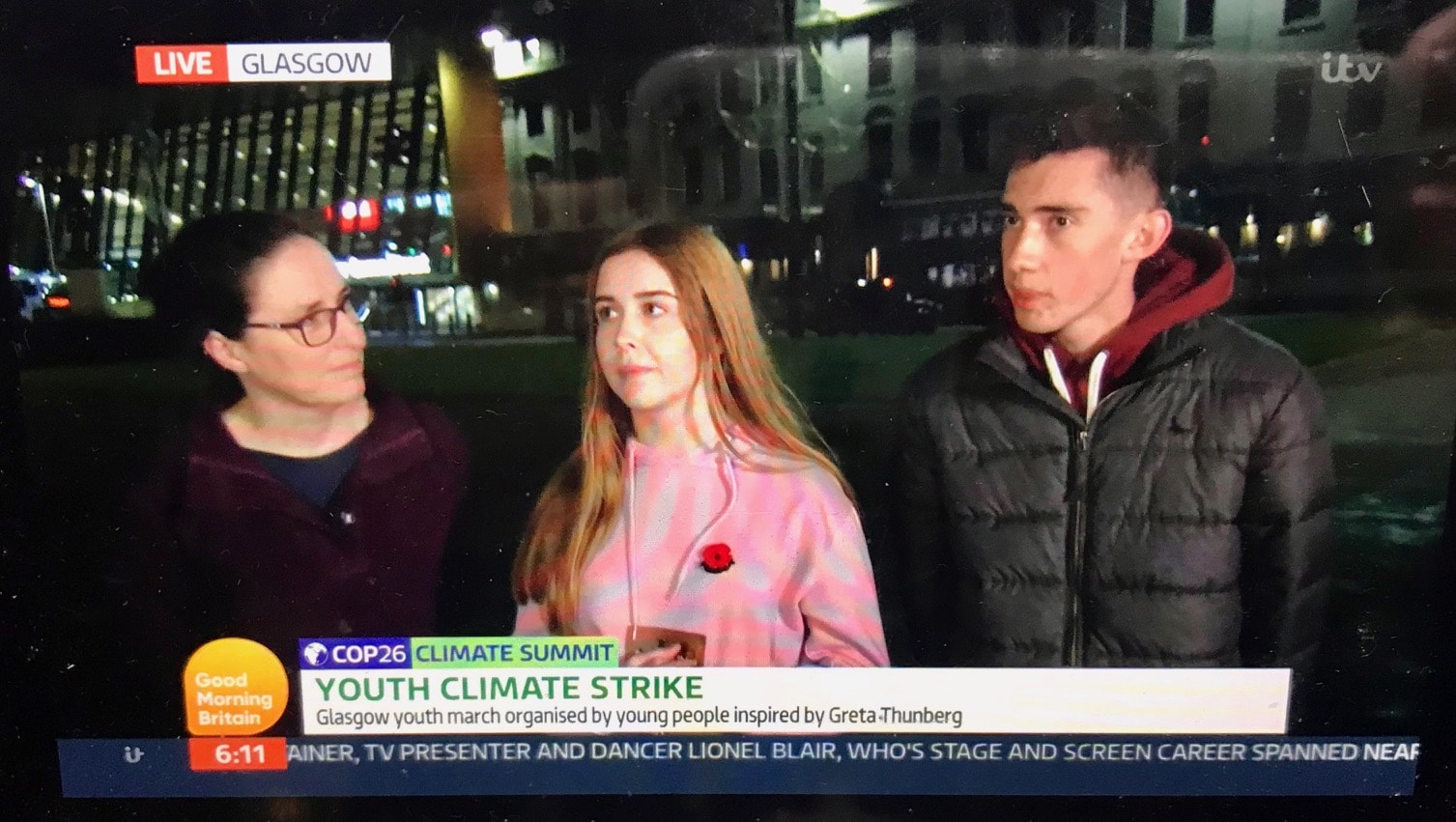 Olivia Finch, at aged 12 years old became the first Jill Dando reporter. She is pictured below in November last year live on GMB on ITV representing UK’s young people at COP26 along with Sir David Attenborough and Prince William.
