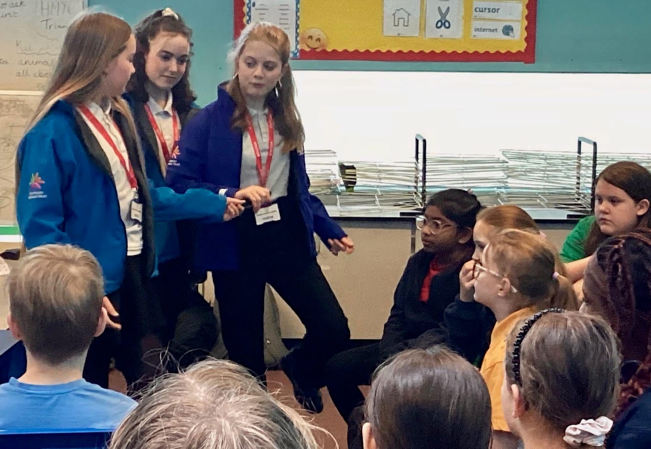 Poppy and Isabella, both 13, and Rosie, 12, swapped notebooks for mentoring roles as they ran a live Good News Room for 9 to 11-year-olds — sharing the skills, confidence and positivity at the heart of the Good News Post programme.